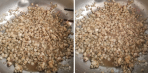 Bắc nồi lên bếp cùng 2 muỗng canh dầu ăn, hành tím và tỏi băm nhuyễn phi thơm với lửa vừa.