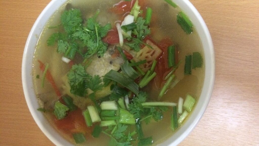 Món canh cá kình nấu ngót hoàn thành nhanh chóng, hương thơm kích thích vị giác vô cùng. Nước canh chua chua ngọt ngọt, cá kình béo mềm thơm ngon, chấm thêm ít nước mắm ớt thì hết sẩy.