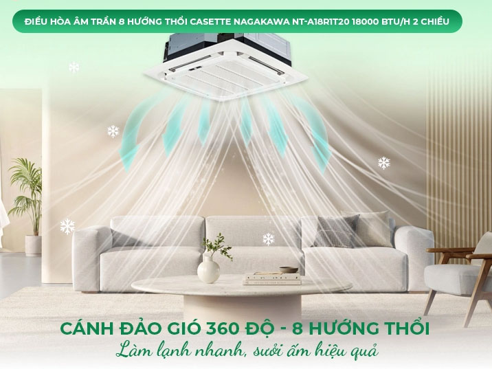 Đặc điểm nổi bật của điều hòa âm trần Casette Nagakawa 18.000 BTU/h 2 chiều NT-A18R1T20
