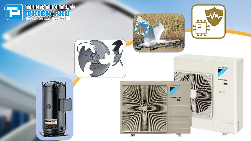 Ngoài ra, dàn trao đổi nhiệt được thiết kế chống ăn mòn giúp tăng độ bền và khả năng vận hành ổn định trong môi trường khắc nghiệt. Cánh quạt cắt chữ V được mô phỏng theo cánh của thiên nga giúp giảm ma sát, tạo luồng gió êm ái và giảm tiếng ồn tối đa. Với những đặc điểm này, điều hòa âm trần Daikin giá rẻ FCFG140AV1V/RZFC140AY19 mang đến trải nghiệm vận hành mượt mà, bền bỉ cùng thời gian.