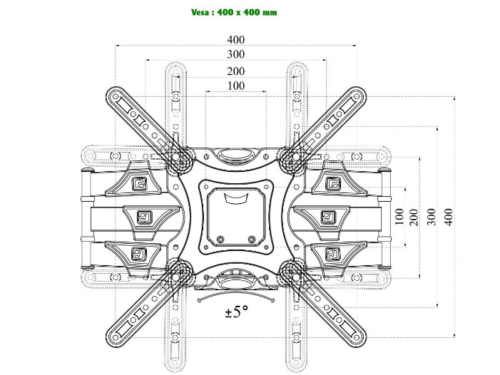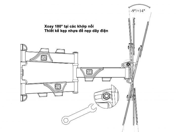 - Giá treo tivi góc xoay đa năng X2T468 43-65 inch có khả năng xoay 180 độ tại các khớp nối giúp tiết kiệm diện tích.
