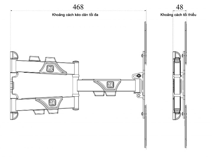 Khoảng cách kéo giãn tối đa: 46,8 cm – giúp bạn có thể đưa màn hình ra xa tường, thuận tiện cho việc vệ sinh hoặc điều chỉnh hướng nhìn.