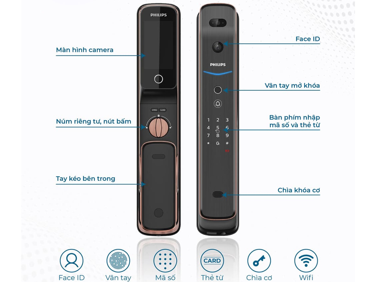 Khóa thông minh Philips DDL709-7HWS là mẫu khóa cửa thông minh cao cấp thế hệ mới đến từ thương hiệu Philips, hội tụ những công nghệ tiên tiến nhất hiện nay như nhận diện khuôn mặt 3D, cảm biến chuyển động, đàm thoại trực tiếp hai chiều và điều khiển từ xa qua wifi. Không chỉ là lá chắn vững chắc bảo vệ ngôi nhà của bạn, mẫu khóa này còn sở hữu thiết kế sang trọng, hiện đại, góp phần nâng tầm không gian sống đẳng cấp.