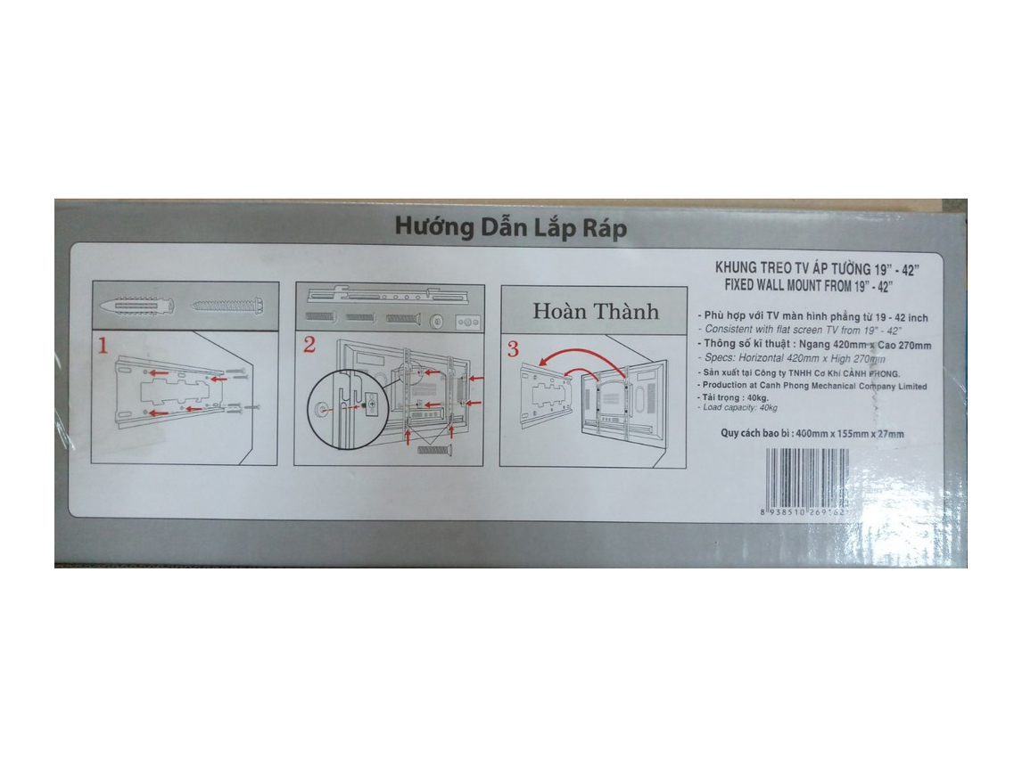 Khung treo tivi áp tường M43T đi kèm tắc kê, ốc, vít,… giúp bạn lắp đặt khung treo vào tường và lắp đặt tivi vào khung treo chắc chắn.