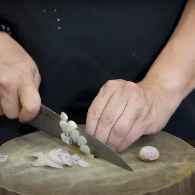 Hành khô và tỏi bạn cũng bóc vỏ và băm nhuyễn.