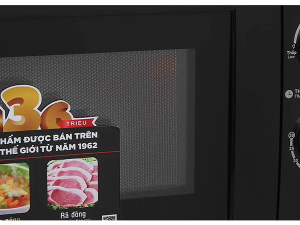 Phần cửa kính dày dặn, chịu nhiệt tốt, đồng thời có thể quan sát được bên trong khoang lò.