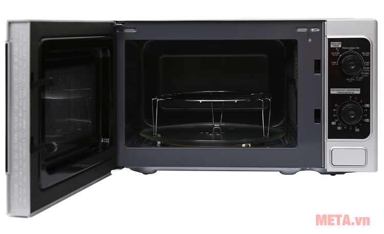 - Công suất mạnh mẽ, với vi sóng là 800W, nướng là 1.000W, với 5 mức chỉnh.