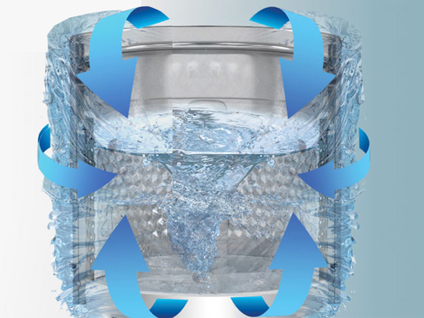 Hệ thống 3 thác nước giúp luồng nước di chuyển theo các hướng đa dạng và linh hoạt hơn. Qua đó quần áo được giặt sạch hơn và giảm hiện tượng xoắn rối, ảnh hưởng chất lượng quần áo.