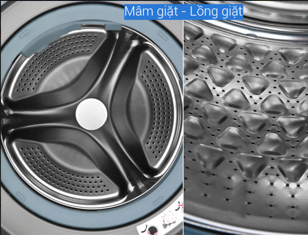 - Thiết kế kiểu dáng lồng ngang hiện đại, làm sạch quần áo hiệu quả, giảm xoắn rối.