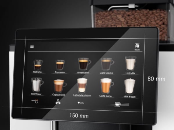 Với chức năng vuốt thẳng đứng, máy pha cà phê chính hãng WMF 950S có màn hình cảm ứng 7 inch cho phép hướng dẫn nhanh với các menu khác nhau được hiển thị giúp dễ dàng sử dụng như chiếc máy tính bảng.