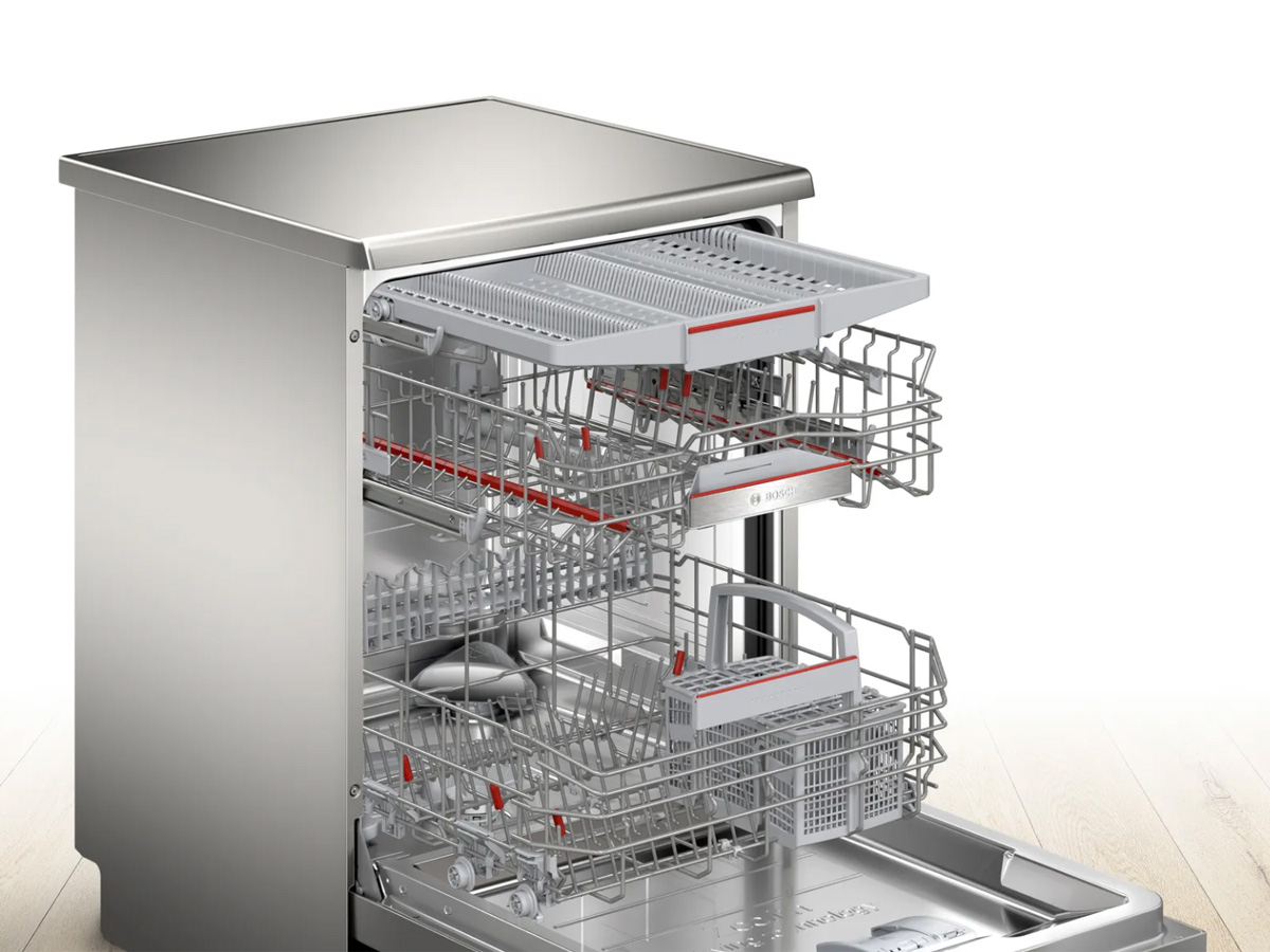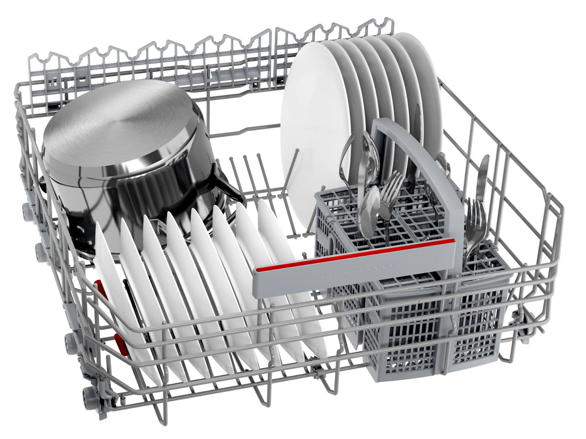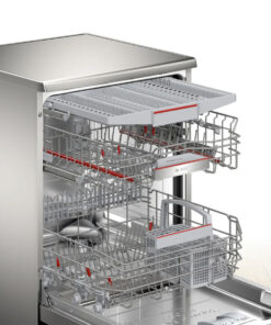 Máy rửa bát Bosch SMS6ZCI37Q được trang bị hệ thống giỏ rửa Max Flex, giúp người dùng dễ dàng xếp dỡ bát đĩa. Giỏ rửa dưới có thiết kế thành cao, cho phép chứa nhiều bát đĩa lớn mà không lo bị va chạm. Bên cạnh đó, giỏ này còn có các thanh đỡ có thể gập lên hoặc xuống, tạo thêm không gian cho dụng cụ lớn như nồi hoặc ly.