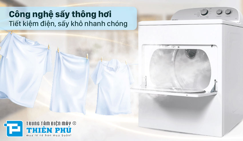 Công nghệ sấy thông hơi mạnh mẽ của Máy sấy quần áo Whirlpool 15Kg 3LWED4815FW