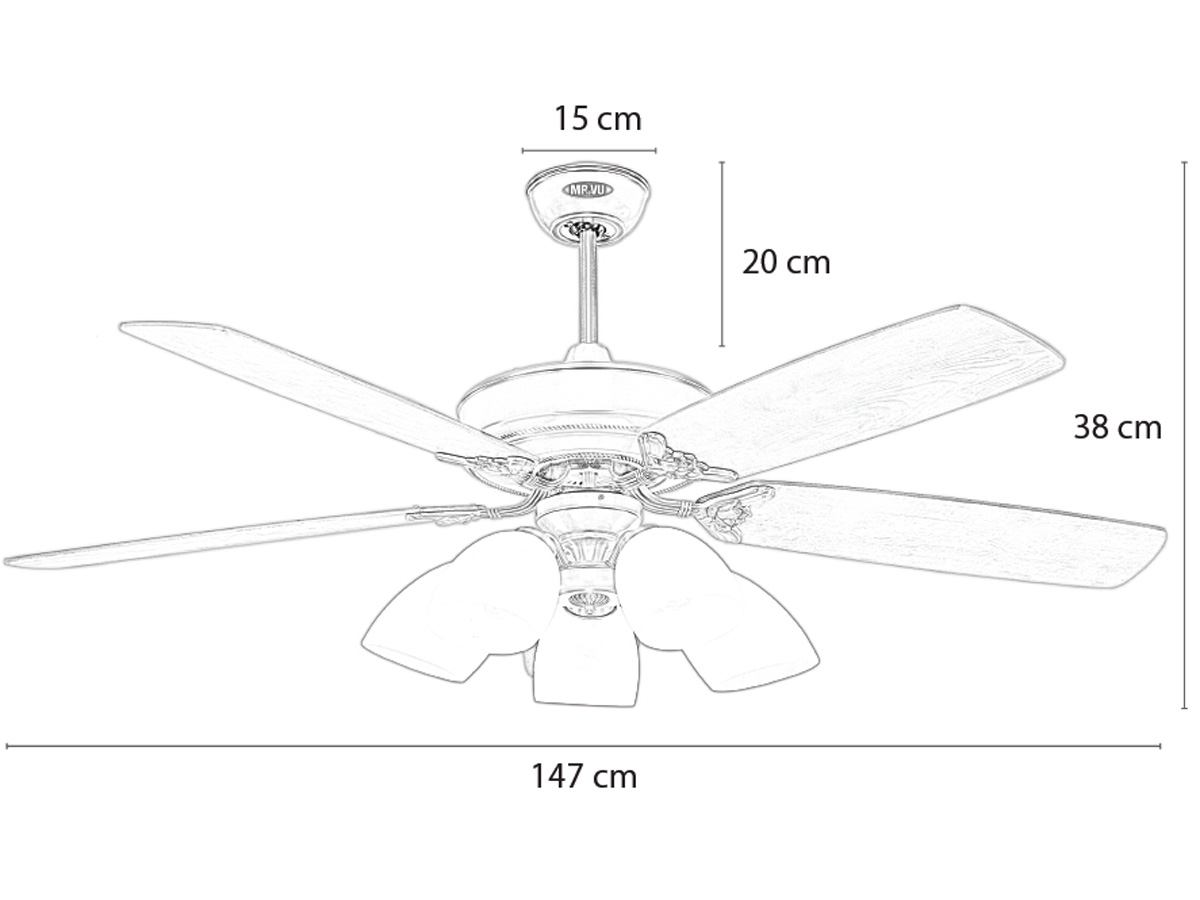 Cánh quạt được làm từ gỗ Plywood, loại gỗ cao cấp đã qua xử lý chống cong vênh và mối mọt. Sải cánh 1,48m, thiết kế dạng hoa sen nở, với độ nghiêng 14 độ, giúp tối ưu hóa luồng gió và giảm tiếng ồn.