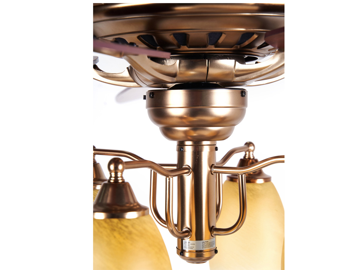 Quạt có thiết kế sinh động với 4 chao đèn làm bằng thủy tinh dày dặn có nhiều họa tiết hoa văn cổ điển. Khi đèn bật lên, hiệu ứng ánh sáng làm nổi bật hoa văn trang nhã trên chao đèn.