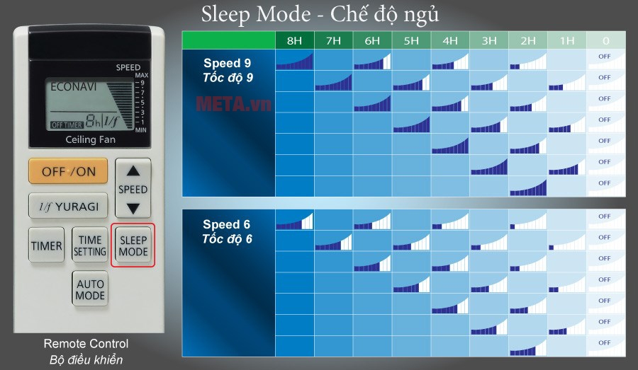 Chức năng tạo gió theo nhịp sinh học (Sleep Mode) được sử dụng khi ngủ sẽ giúp bạn có giấc ngủ sâu hơn và khi thức giấc không bị mệt mỏi do luồng gió của quạt.
