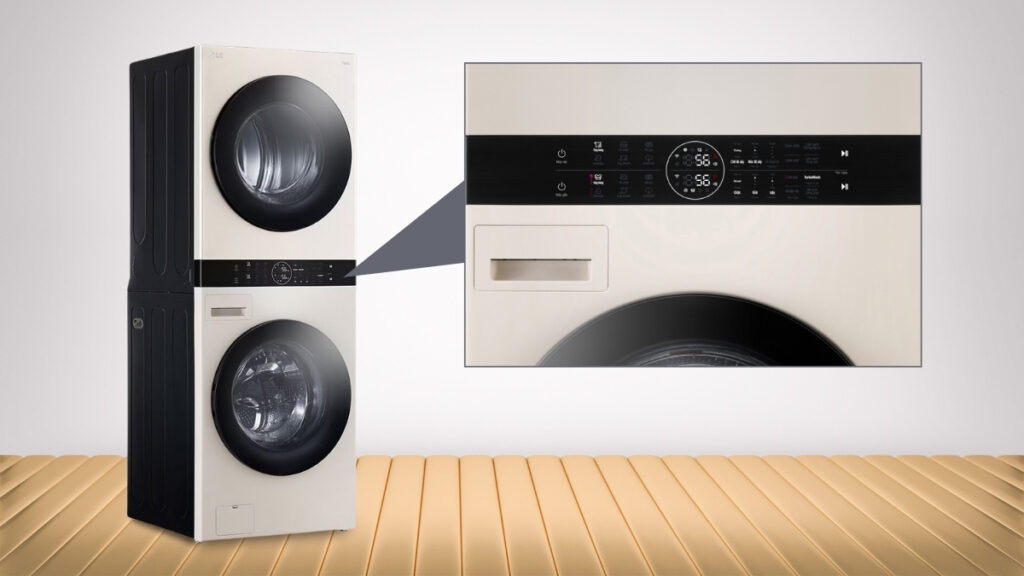 Ngoài ra, thiết kế của tháp giặt sấy LG WT1410NHE này còn được tối ưu hóa để mang lại sự thoải mái cho người dùng. Với chiều cao tổng thể chỉ khoảng 1,890 mm, thấp hơn khoảng 87 mm so với hai thiết bị giặt và sấy thông thường khi lắp chồng lên nhau. Điều này giúp việc chuyển quần áo từ máy giặt sang máy sấy trở nên dễ dàng hơn, đồng thời tạo sự thuận tiện trong quá trình sử dụng hàng ngày.