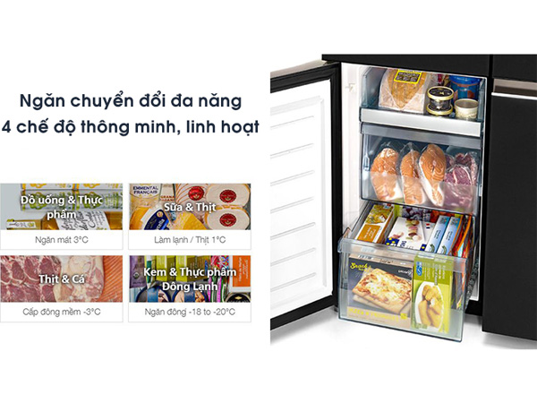 - Làm mát 3°C – Không gian lưu trữ đồ ăn và thức uống: Biến ngăn chuyển đổi thành một ngăn mát phụ bất cứ lúc nào bạn muốn.