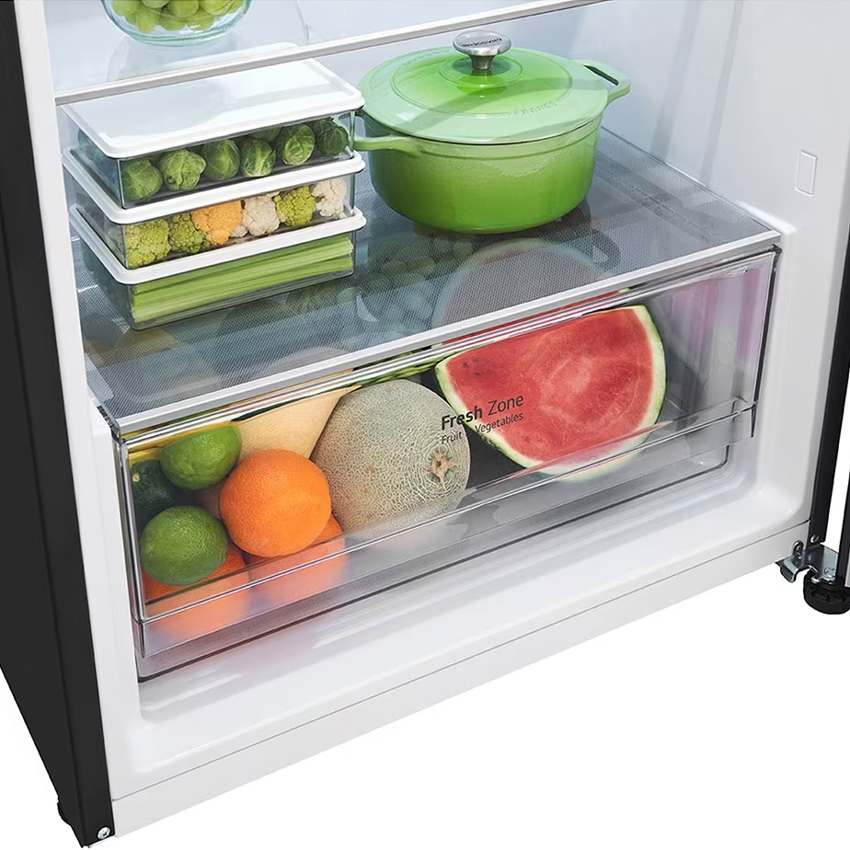 Tủ lạnh LG có dung tích ngăn đá là 88 lít và dung tích ngăn lạnh là 286 lít, sẽ là lựa chọn tốt nhất để bảo quản thực phẩm cho gia đình có 3 – 5 thành viên.
