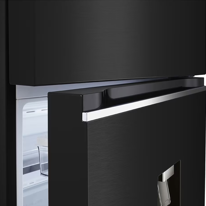 Tủ lạnh 2 cánh thiết kế với cần gạt lấy nước bên ngoài cửa rất tiện ích. Tủ lạnh sẽ trang bị riêng một khay chứa nước bên trong tủ, bạn chỉ cần châm đầy nước ở ngăn chứa này là sẽ có thể lấy nước lạnh ngay bên ngoài tủ nhanh chóng mà không phải mở cửa tủ nhiều lần, tránh thất thoát hơi lạnh và tiết kiệm điện năng.