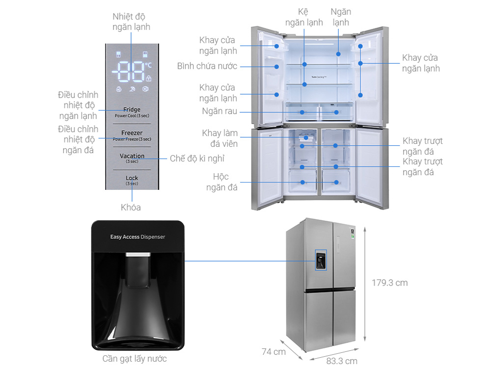 Tích hợp các tiện ích: Chế độ kỳ nghỉ Vacation, lấy nước bên ngoài, ngăn trữ rau củ quả FreshZone, làm lạnh nhanh Power Cool và cấp đông nhanh Power Freeze…