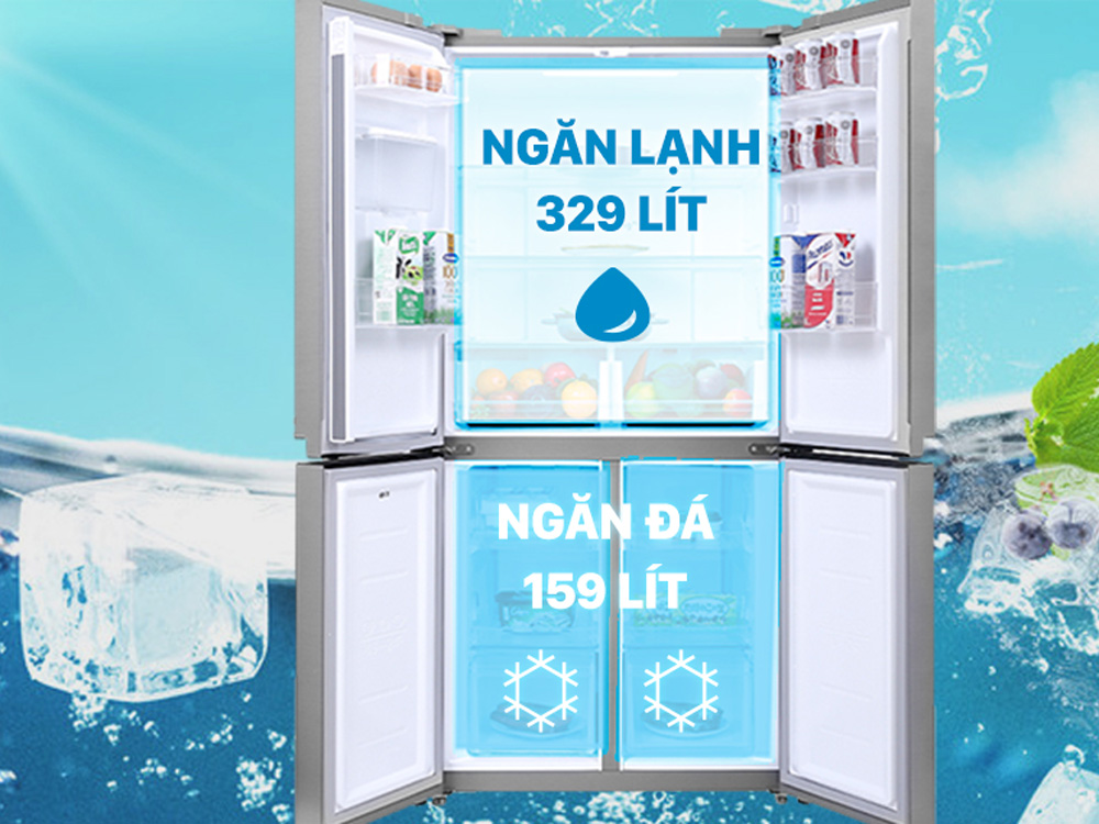 Dung tích tổng 511 lít, dung tích sử dụng 488 lít, phù hợp với gia đình có 4- 6 thành viên.