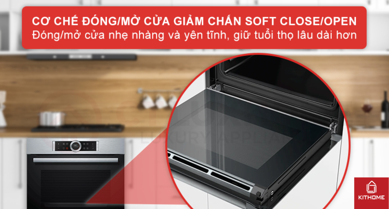 Cơ chế giảm chấn bản lề (SoftClose) là một tính năng hiện đại được tích hợp vào cửa lò nướng âm tủ Bosch HBG6764S6B. Cơ chế này giúp cửa lò đóng lại một cách nhẹ nhàng và êm ái, tránh tình trạng đóng cửa mạnh gây tiếng ồn và giảm thiểu rủi ro hư hỏng. Cơ chế giảm chấn bản lề hoạt động dựa trên các giảm chấn và lò xo đặc biệt được gắn vào bản lề cửa lò. Khi bạn đóng cửa, các giảm chấn này sẽ hấp thụ lực và làm chậm quá trình đóng lại, đảm bảo cửa lò không bị đóng mạnh đột ngột.