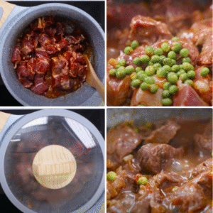 Cuối cùng, bạn đậy nắp, rim thịt bò trên lửa vừa trong 15 phút cho đến khi thịt bò chín mềm là được.