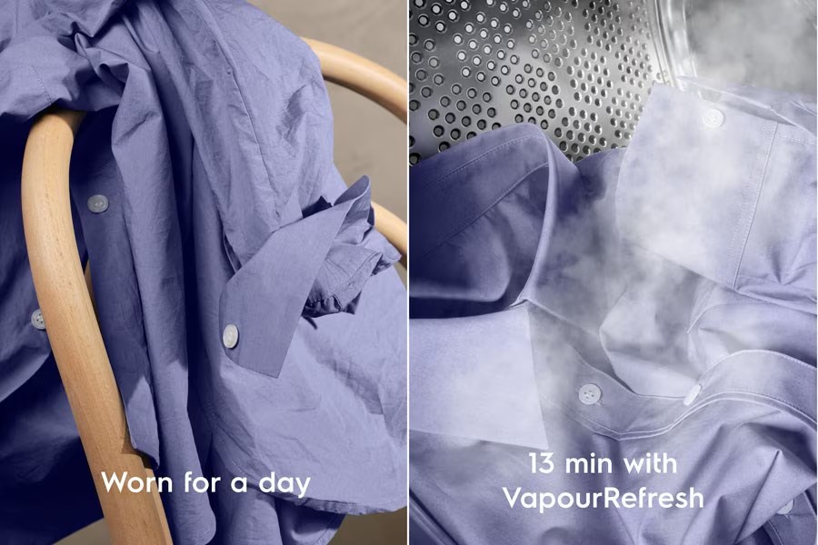 Ngoài ra, chu trình VapourRefresh trên máy giặt Electrolux kiểu lồng EWF1143R7WC còn giúp làm mới quần áo bằng hơi nước, giảm nhăn và loại bỏ mùi khó chịu. Điều này đặc biệt hữu ích đối với những trang phục ít bẩn nhưng cần được làm mới nhanh chóng.