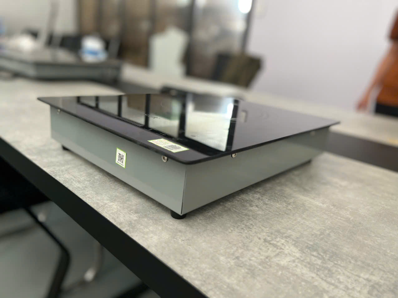 Đây là mặt kính chuyên dụng dành cho bếp điện từ, là một loại kính có chất lượng cao, rất cứng, bền và có nhiều đặc điểm nổi trội như: khả năng chịu nhiệt, khả năng chống trầy xước và chống va đập …. Mặt kính gồm các thấu kính hội tụ, truyền nhiệt từ bếp lên đáy nồi theo phương thẳng đứng, không thất thoát nhiệt ra môi trường. Mặt kính màu xám liền nguyên khối, an toàn, thẩm mỹ và tiện trong việc vệ sinh, lau chùi.