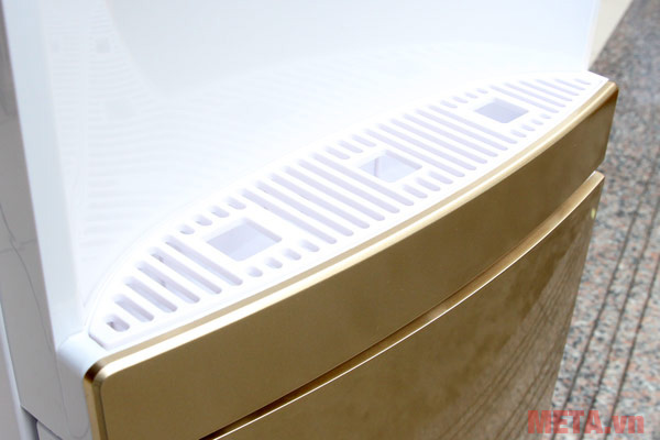 Phía dưới thân máy được trang bị khoang chứa đồ rộng rãi dùng để đựng cốc chén. Công tắc bật nước nóng và nước lạnh được thiết kế đằng sau thân máy để cho người dùng thuận tiện trong việc bật công tắc làm lạnh và làm nóng nước.
