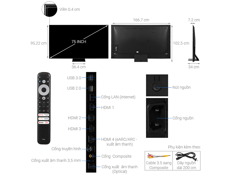 Thông tin Google Tivi TCL QD-Mini LED 75 Inch 4K 75C755