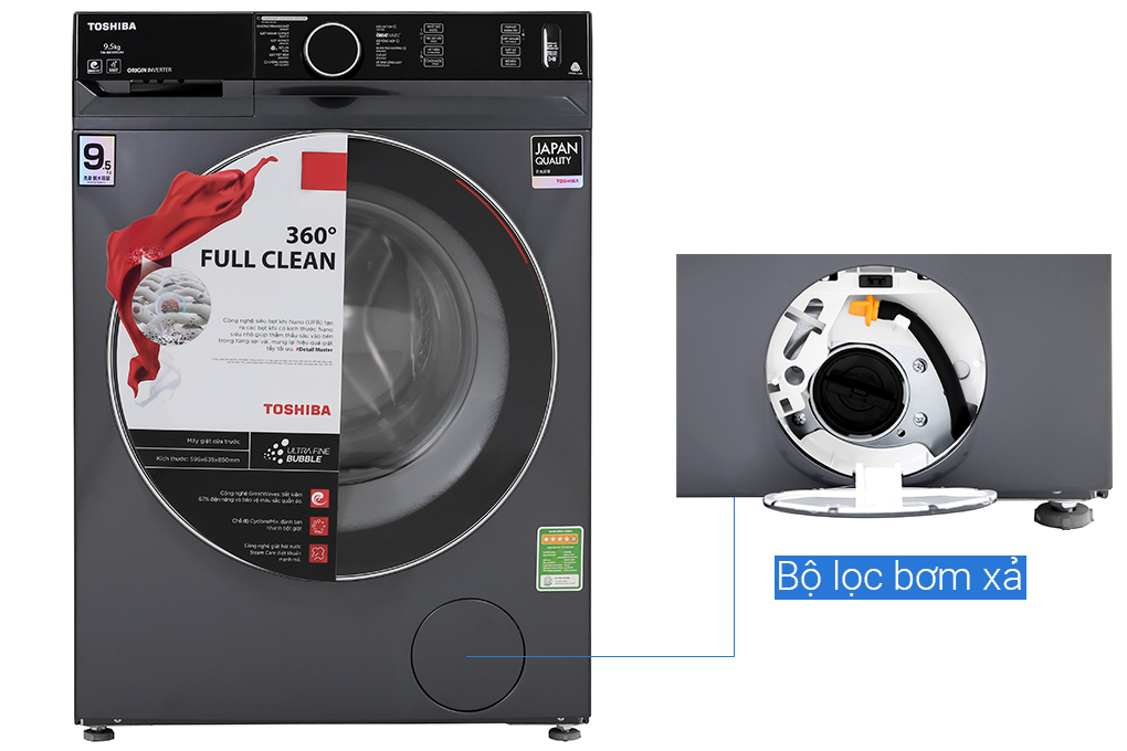 Khối lượng giặt 9.5kg, chiếc máy giặt Toshiba TW-BK105G4V(MG) này sẽ đáp ứng tốt nhu cầu giặt giũ cho những gia đình có trên 6 thành viên.