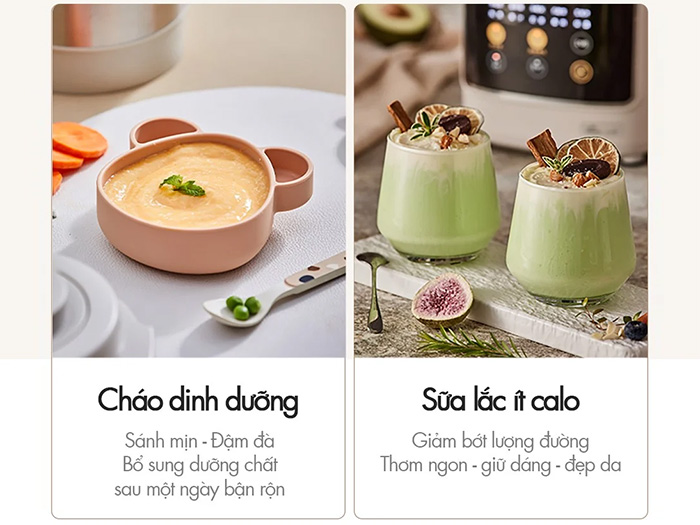 Nhờ sự kết hợp giữa công nghệ hiện đại và thiết kế thân thiện, bạn hoàn toàn có thể tạo ra những ly sữa hạt thơm mịn, đậm đà, giữ trọn dưỡng chất mà không cần mất nhiều công sức hay thời gian. Máy hoạt động êm ái, không gây ồn lớn, mang lại trải nghiệm nấu ăn dễ chịu hơn mỗi ngày.