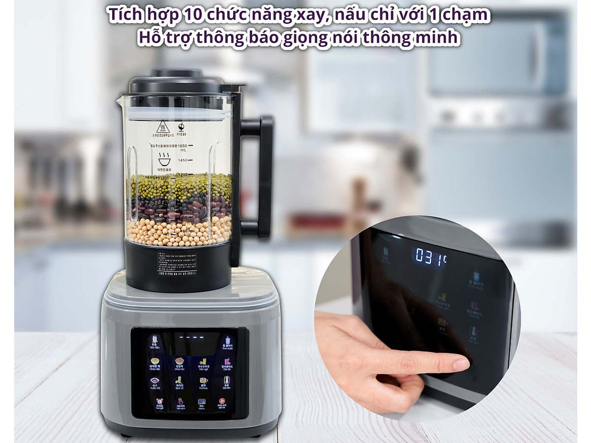 Nấu tất cả các món ăn ngon của gia đình trong cùng một chiếc máy: Sữa đậu – Đun nước – Chảo đặc- Cháo dinh dưỡng UM – Sữa ngô – Sữa lắc – Nước sốt – Sinh tố – Trà hoa – Giữ ẩm