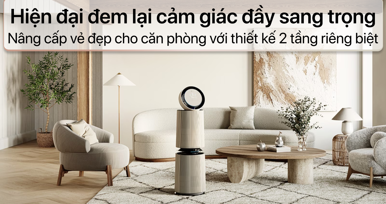 Thiết kế hiện đại và tiện lợi: Máy lọc không khí LG 360 AS10GDBY0 không chỉ mang lại hiệu quả lọc không khí vượt trội mà còn có thiết kế hiện đại, sang trọng, phù hợp với mọi không gian sống. Thiết kế tinh tế và thông minh của sản phẩm giúp tối ưu không gian sử dụng và dễ dàng vệ sinh, bảo quản.
