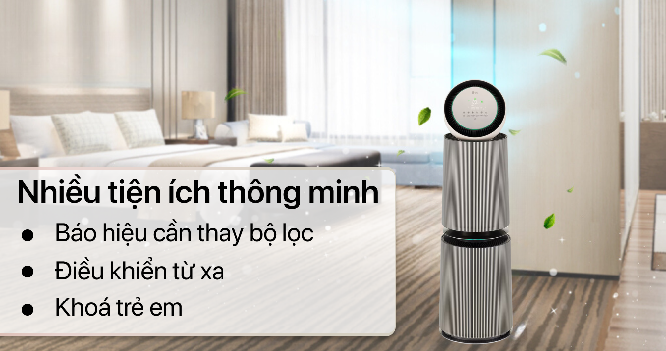 Máy lọc không khí này có khả năng kết nối với ứng dụng LG ThinQ, cho phép người dùng điều khiển và giám sát máy từ xa qua điện thoại thông minh. Bạn có thể kiểm tra chất lượng không khí, điều chỉnh chế độ hoạt động và nhận thông báo khi cần thay màng lọc.