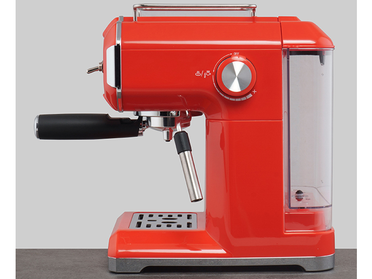 Máy pha cà phê có thiết kế đồng hồ báo nhiệt, áp suất nén 15 bar. Tay cầm đựng cà phê bột có chốt an toàn giúp tháo lắp nhanh chóng.