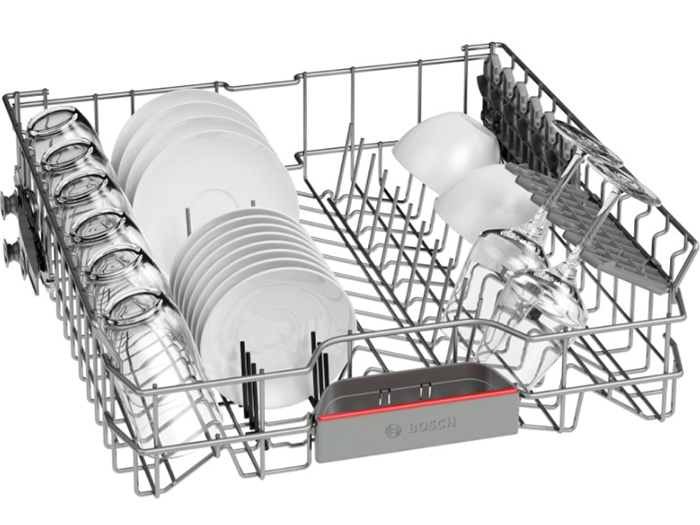 VarioFlex của máy rửa bát Bosch series 4 SMS4EMI01E linh hoạt và sử dụng không gian tốt hơn. Thiết kế giàn VarioFlex của Bosch có giàn thứ 3 riêng biệt để xếp dao, kéo, thìa hay dia của bạn một cách khoa học. Thiết kế mặt bên của giàn có thể hạ thấp được xuống để xếp cốc nhỏ, bát nhỏ. Các điểm tiếp xúc màu đỏ và các nút màu đỏ đánh dấu vị trí và cách điều chỉnh giàn linh hoạt với dao kéo được xếp. Với thiết kế như thế, nội thất của máy rửa bát trở nên khoa học và gọn gàng hơn.
