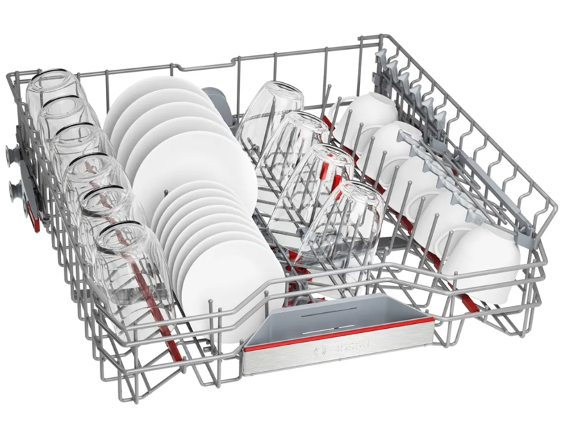 Máy rửa bát Bosch SMV6ZCX42E Serie 6 sử dụng chất liệu cao cấp, không han gỉ, không rò rỉ điện, không bám vân tay. Hệ thống giỏ linh hoạt chứa được cả nồi.