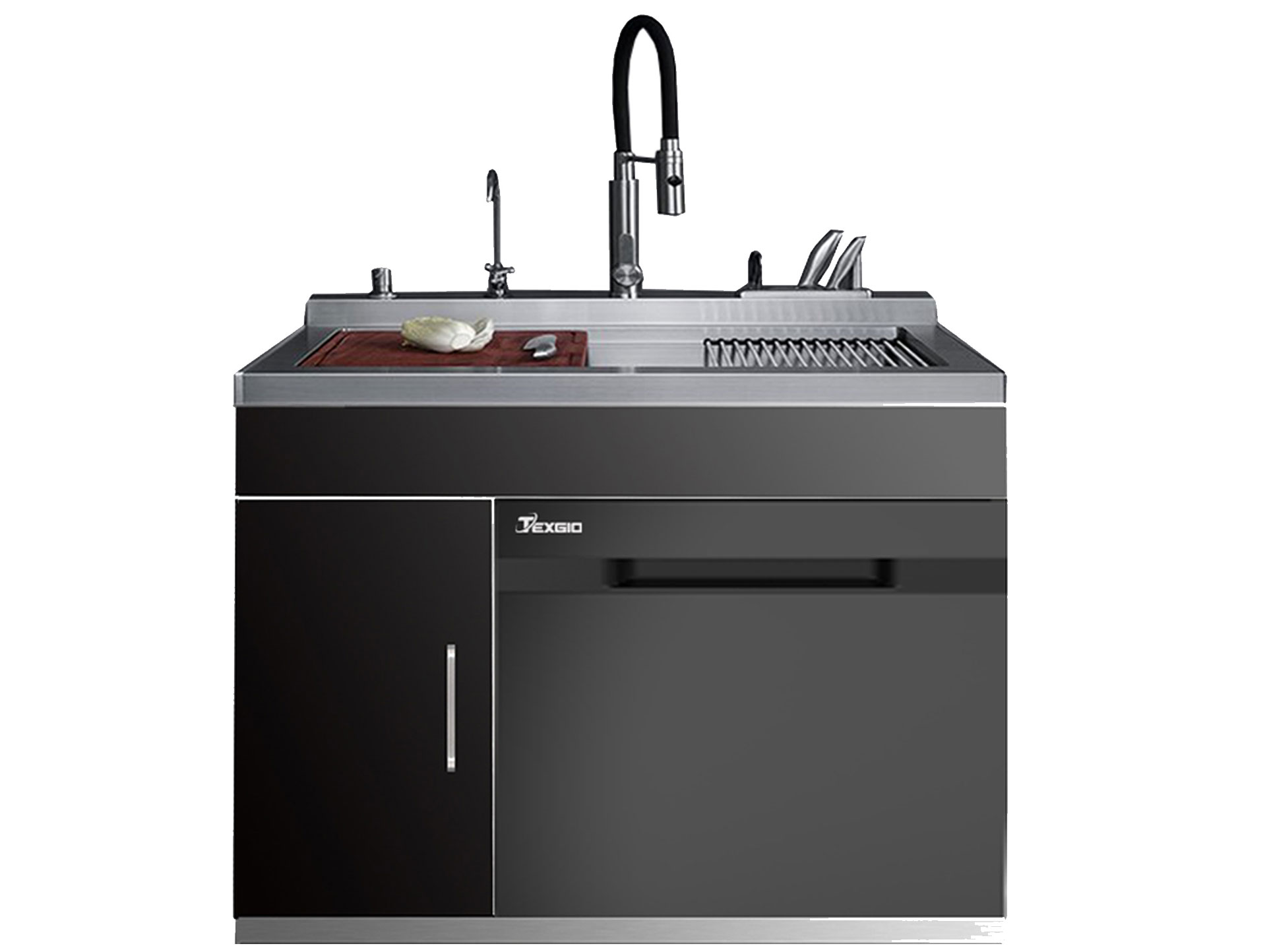 Máy rửa bát Texgio thiết kế liền chậu, vòi rút inox 304 cao cấp linh hoạt sử dụng kết hợp chậu rửa 1 ngăn dung tích lớn, thớt thái tiện lợi.