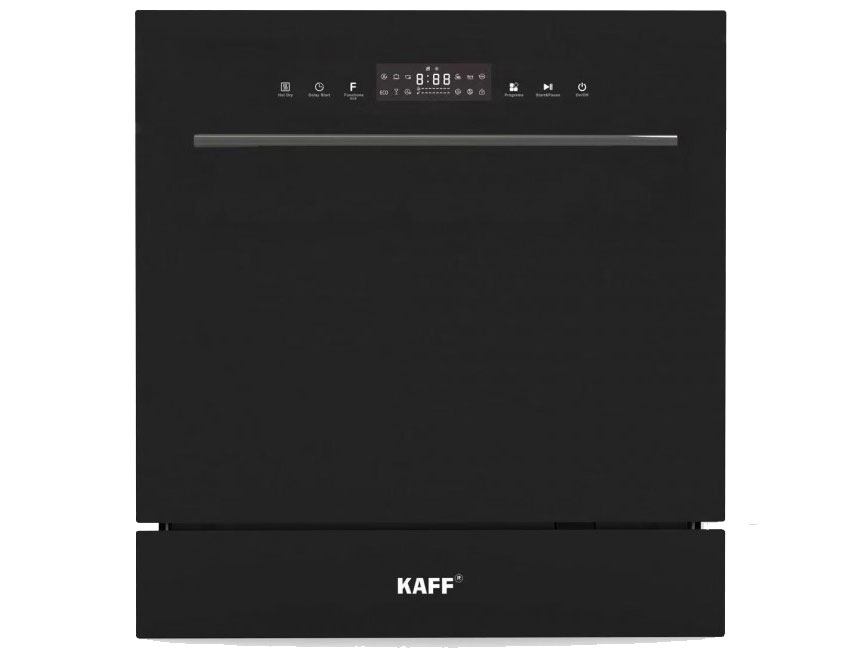 Máy rửa chén Kaff KF-BISMS8 Plus lắp âm tủ bán phần cực kỳ gọn đẹp. Máy rửa chén có sức chứa 12 bộ đồ ăn Châu Âu.
