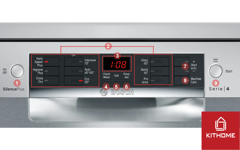 Các ký hiệu cơ bản trên bảng điều khiển máy rửa bát Bosch SMS46MI01G
