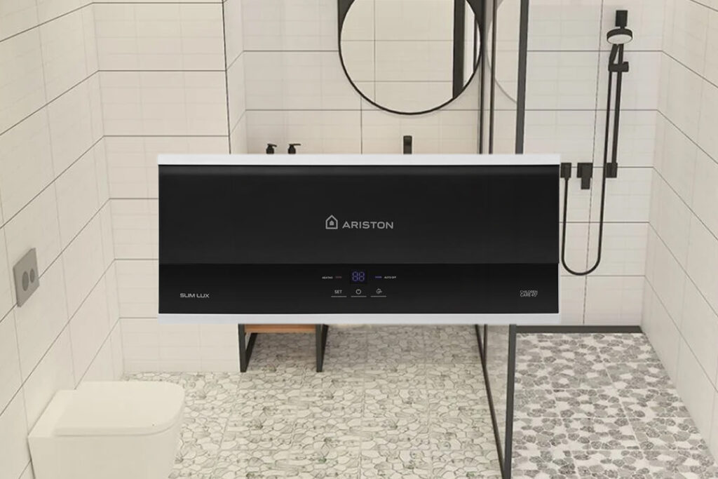 Ngoài ra, nhiều gia đình hiện nay cũng ưu tiên các dòng bình nóng lạnh Ariston ngang nhờ thiết kế gọn gàng và dễ lắp đặt. Kiểu dáng này giúp tận dụng tốt không gian phía trên tường phòng tắm, phù hợp với các căn hộ chung cư hoặc nhà phố có diện tích vừa phải, đồng thời mang lại tính thẩm mỹ cao cho không gian.