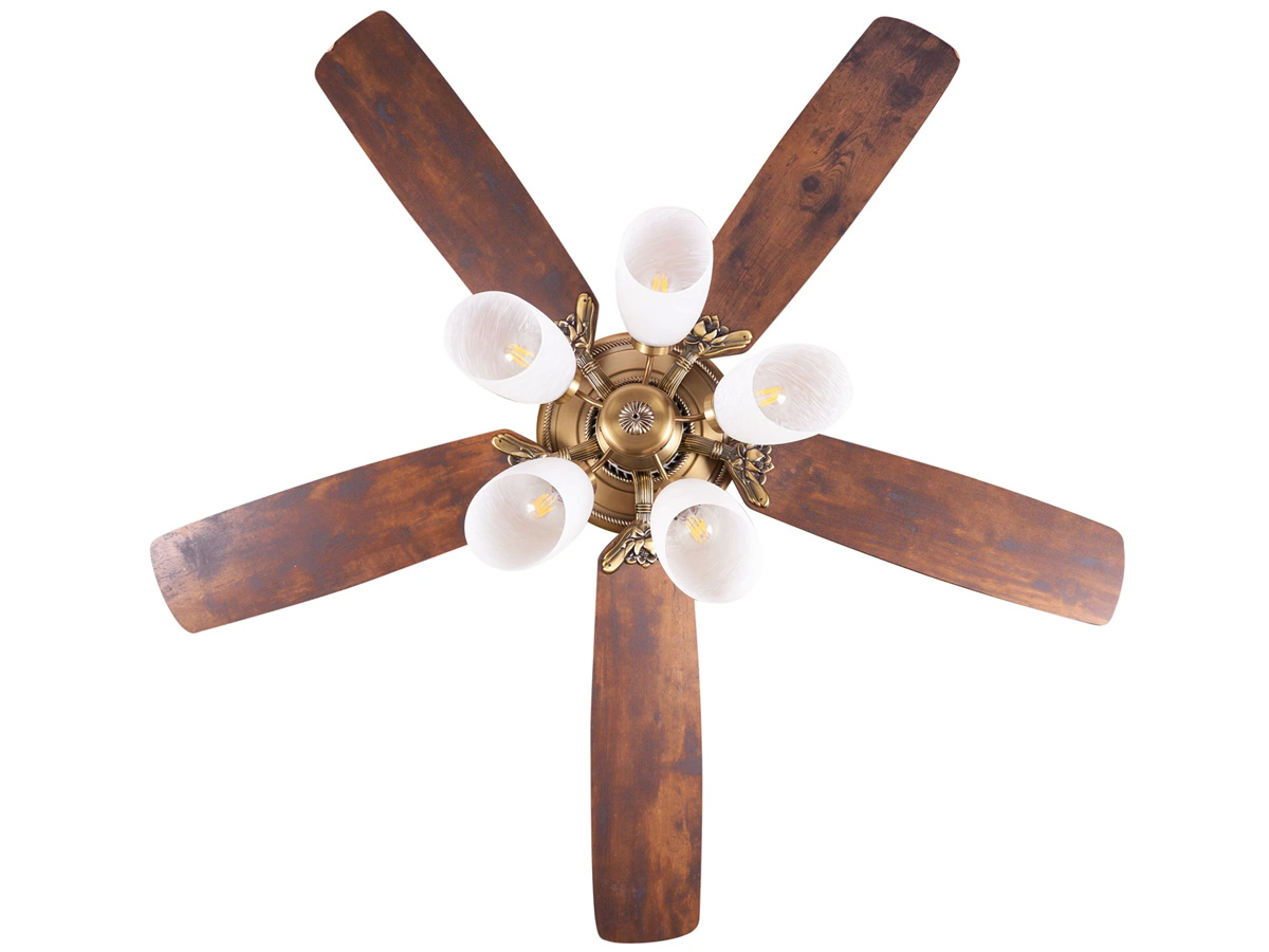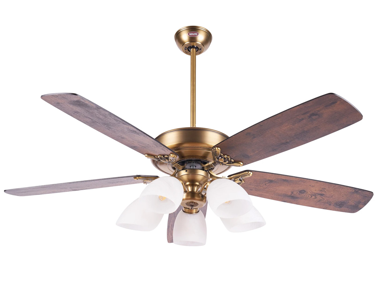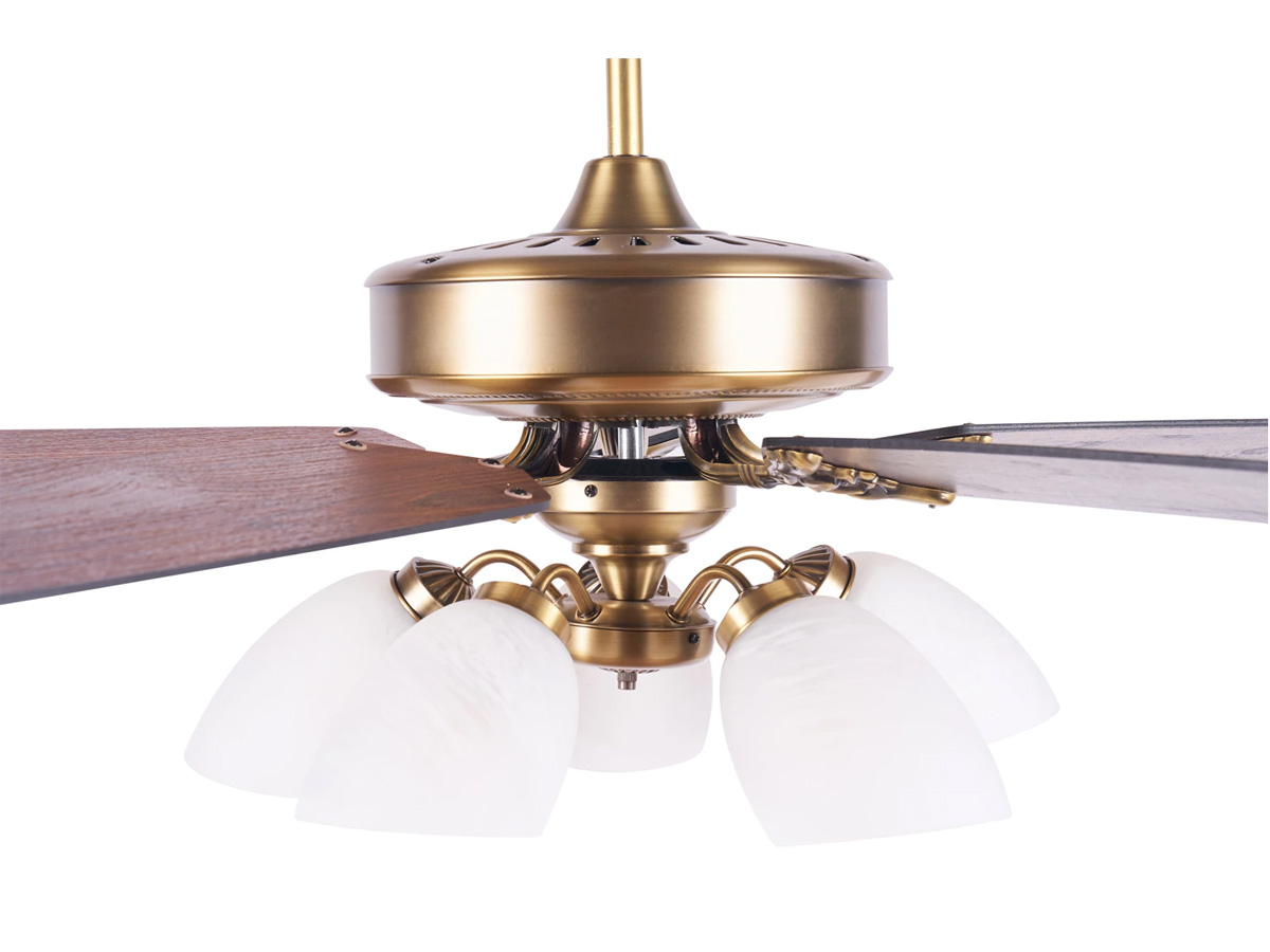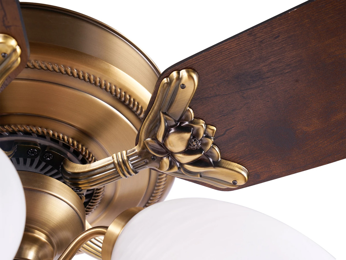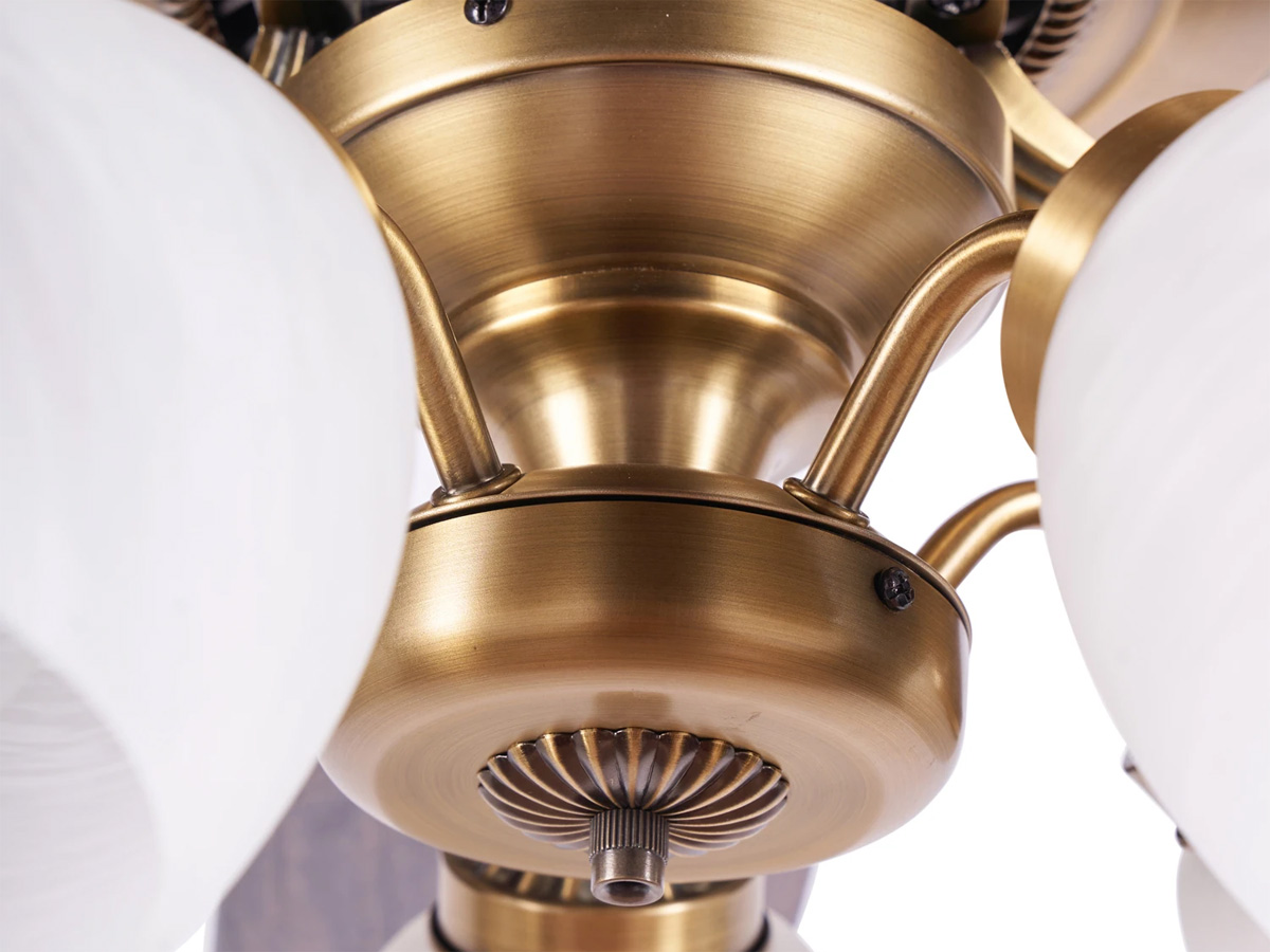 Sản phẩm được sơn phủ màu vàng đồng quý phái, mang phong cách hoàng gia phù hợp với nội thất Việt Nam. Từng chi tiết từ thân quạt, ốp, khung đèn đến cánh quạt đều được gia công tỉ mỉ, chống trầy xước và gỉ sét trong quá trình sử dụng, đảm bảo vẻ đẹp lâu dài.