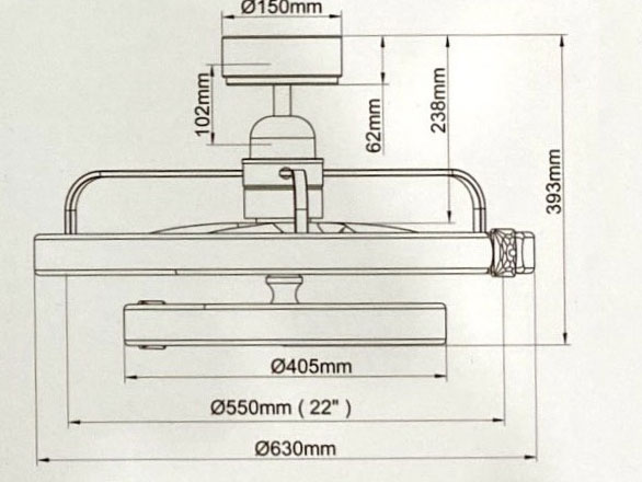 – Công suất: 18W – 220V – 50HZ, 6 cánh nhựa ABS