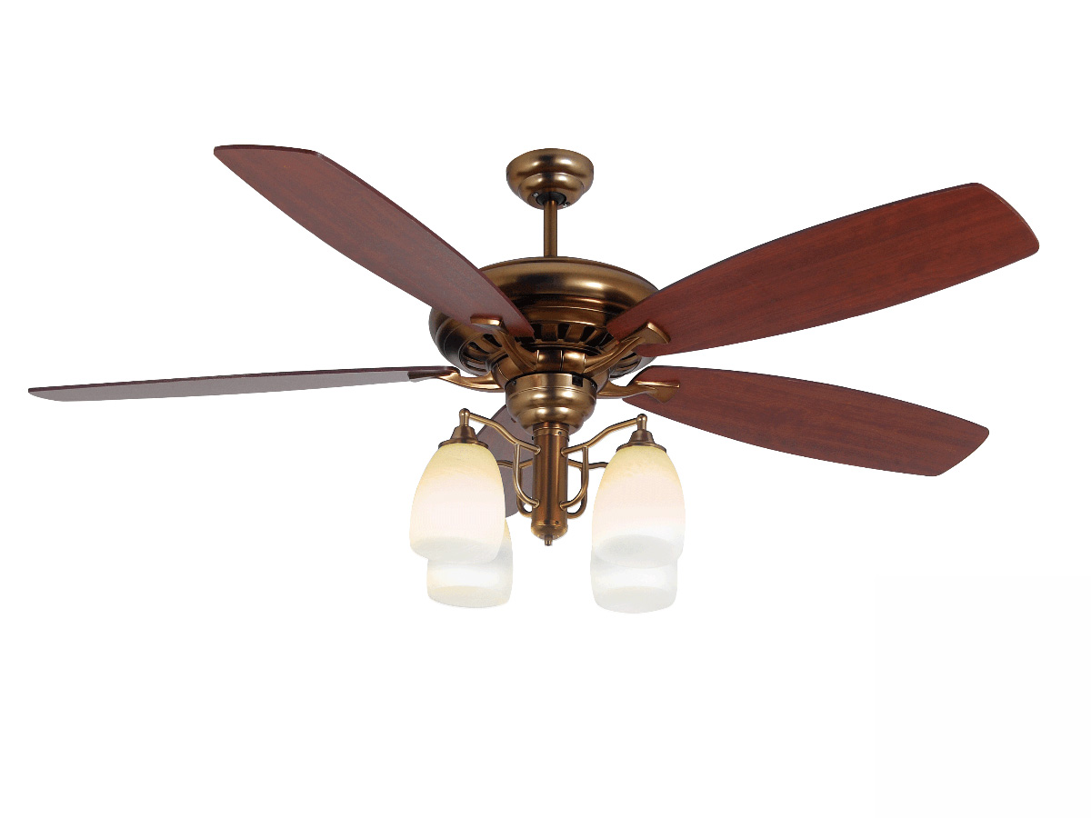 Quạt có thiết kế sinh động với 4 chao đèn làm bằng thủy tinh dày dặn có nhiều họa tiết hoa văn cổ điển. Khi đèn bật lên, hiệu ứng ánh sáng làm nổi bật hoa văn trang nhã trên chao đèn.