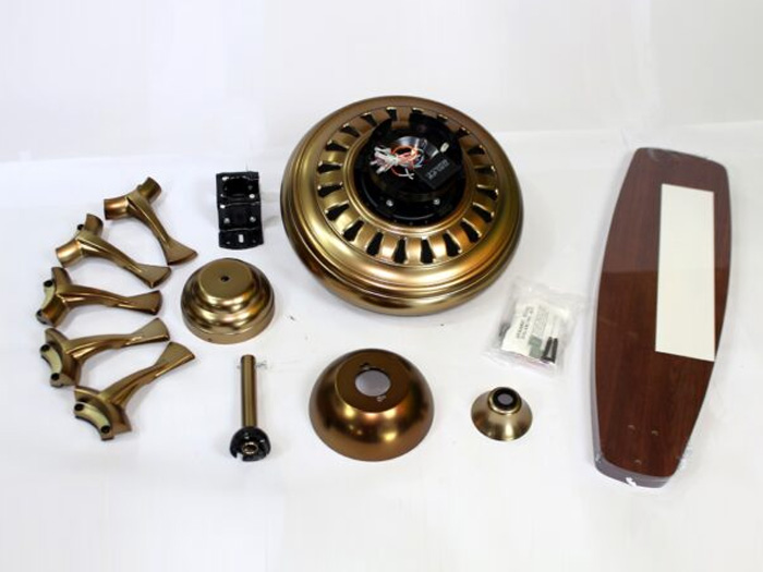 Tay cánh của quạt làm từ thép chắc khỏe, không lo bị gỉ sét. Bên ngoài chất thép được sơn tĩnh điện màu đồng vàng.