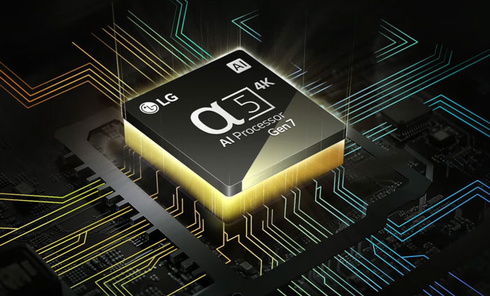 Smart tivi LG 65 inch 4K 65UT7350PSB được trang bị bộ xử lý alpha 5 Gen 7 AI 4K tự động tối ưu âm thanh và độ sáng, đưa bạn đắm chìm trong từng giây tận hưởng. Cùng với đó, bộ xử lý alpha 5 Gen 7 AI 4K có khả năng phân tích cách bài trí nội thất cùng tọa độ thưởng thức của bạn để tạo ra âm thanh vòm ảo, hoàn hảo tựa không gian hòa nhạc ba chiều.