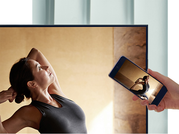 Tính năng Tap View: Người dùng có thể chạm nhẹ vào cạnh tivi Samsung để gửi tính hiệu và phát nhanh các nội dung từ điện thoại lên màn hình lớn của tivi.