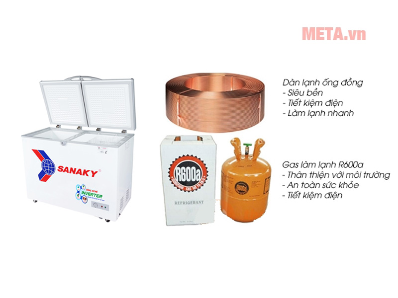 Dàn lạnh của tủ đông Sanaky VH 2899A3 được làm từ chất liệu đồng có độ nguyên chất tới 99,9% đảm bảo tuổi thọ cao, đồng thời cho khả năng làm lạnh sâu góp phần bảo quản thực phẩm lâu dài, giữ trọn vẹn dưỡng chất.